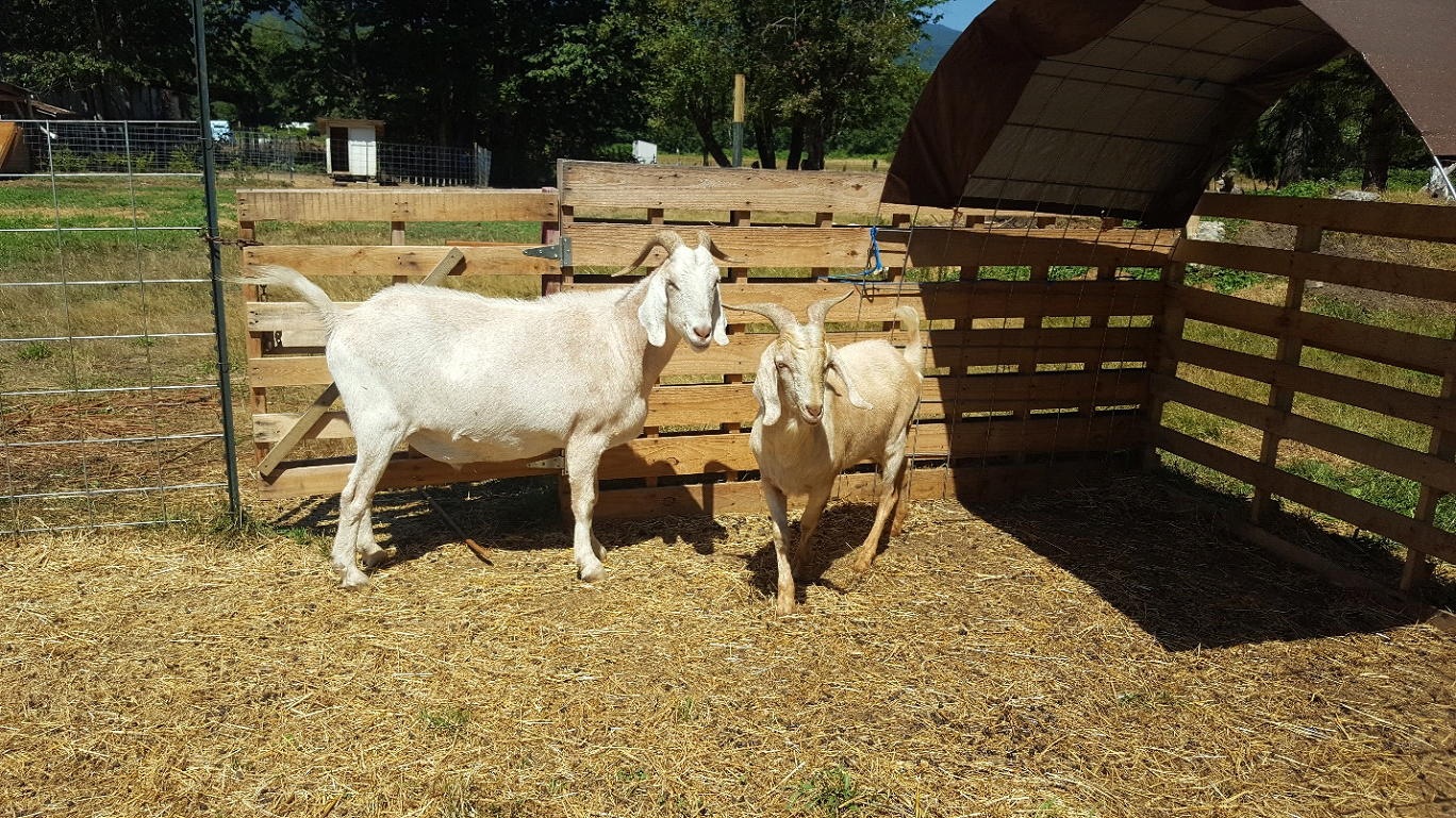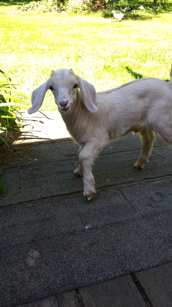 Like Sabrina, Lincoln eventually got too big to fit in the crate and stayed home. He grew, and grew, and grew until now, if he goes anywhere, it’s in the horse trailer. He towers over the other goats, but he loves attention and will stand with his eyes closed while we pet him. At the same time, he’s a very jealous boy and will chase off anyone who might get his loves or treats. Since Sabrina kidded, Lincoln has spent his time being a companion for the buck, Linus, who is separated from the does unless it’s breeding season. He’s somewhat fond of Linus, but he’d much rather be with everyone else. This year we’ve added another buck to the herd and when he’s grown, he’ll go in with Linus and Lincoln will get his wish!